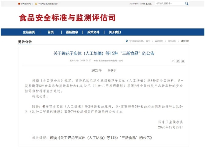 | 泛亞醫(yī)藥研發(fā)的蟬花被國家衛(wèi)健委批準(zhǔn)為新食品原料 | |